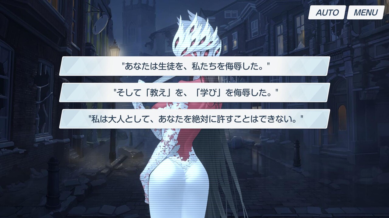 先生を仲間と認識して競い合う黒服も、先生を敵対者と認識して争い合うベアトリーチェも、先生と勝負しているという点では変わっていないんだよね